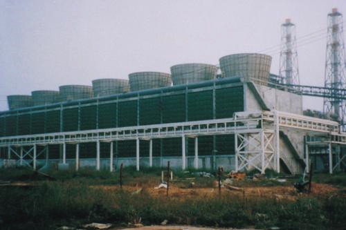 3、GFN無填料噴霧冷卻塔是通過霧化裝置將水噴成霧狀,使空氣和水的微小粒狀均勻接觸,而填料塔是通過布水噴頭將水分布在填料上以膜狀與冷風接觸。